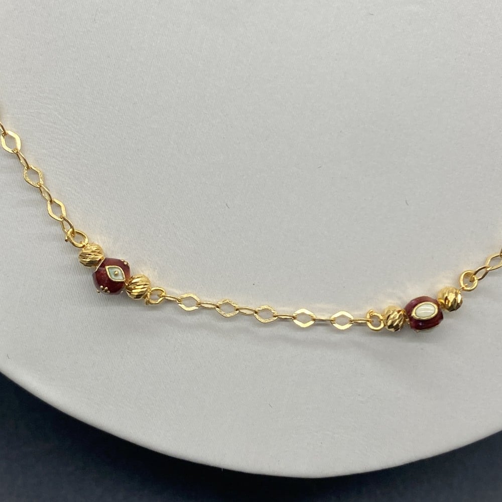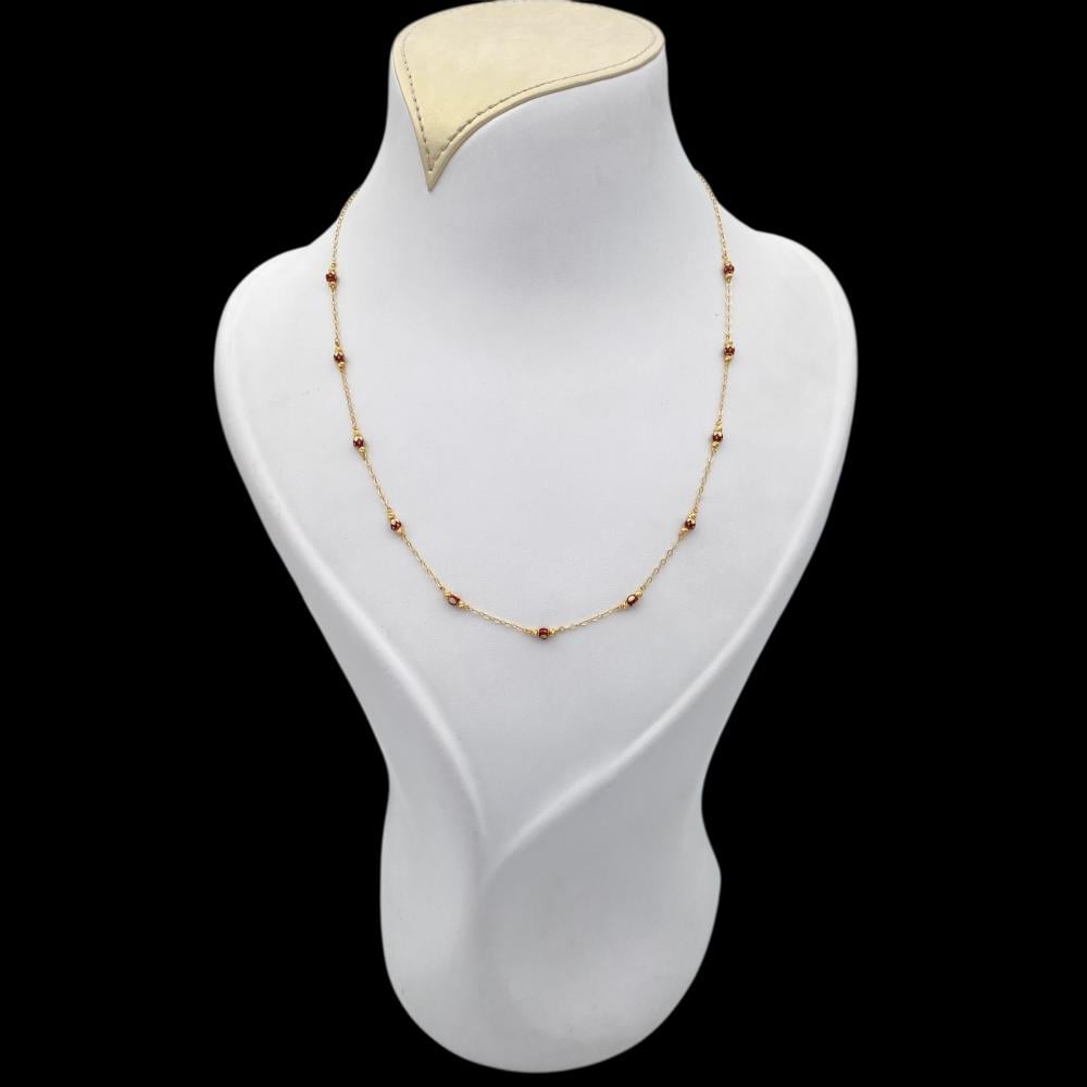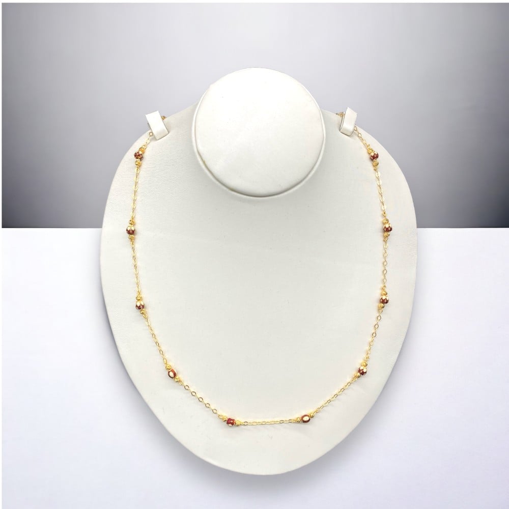 This luxurious Indian designed golden rosary is made of 21 carats and weighs 4.77 grams. It features a sophisticated and elegant design that adds a touch of beauty and elegance to your look. Get this elegant piece to shine with a luxurious and distinctive look.