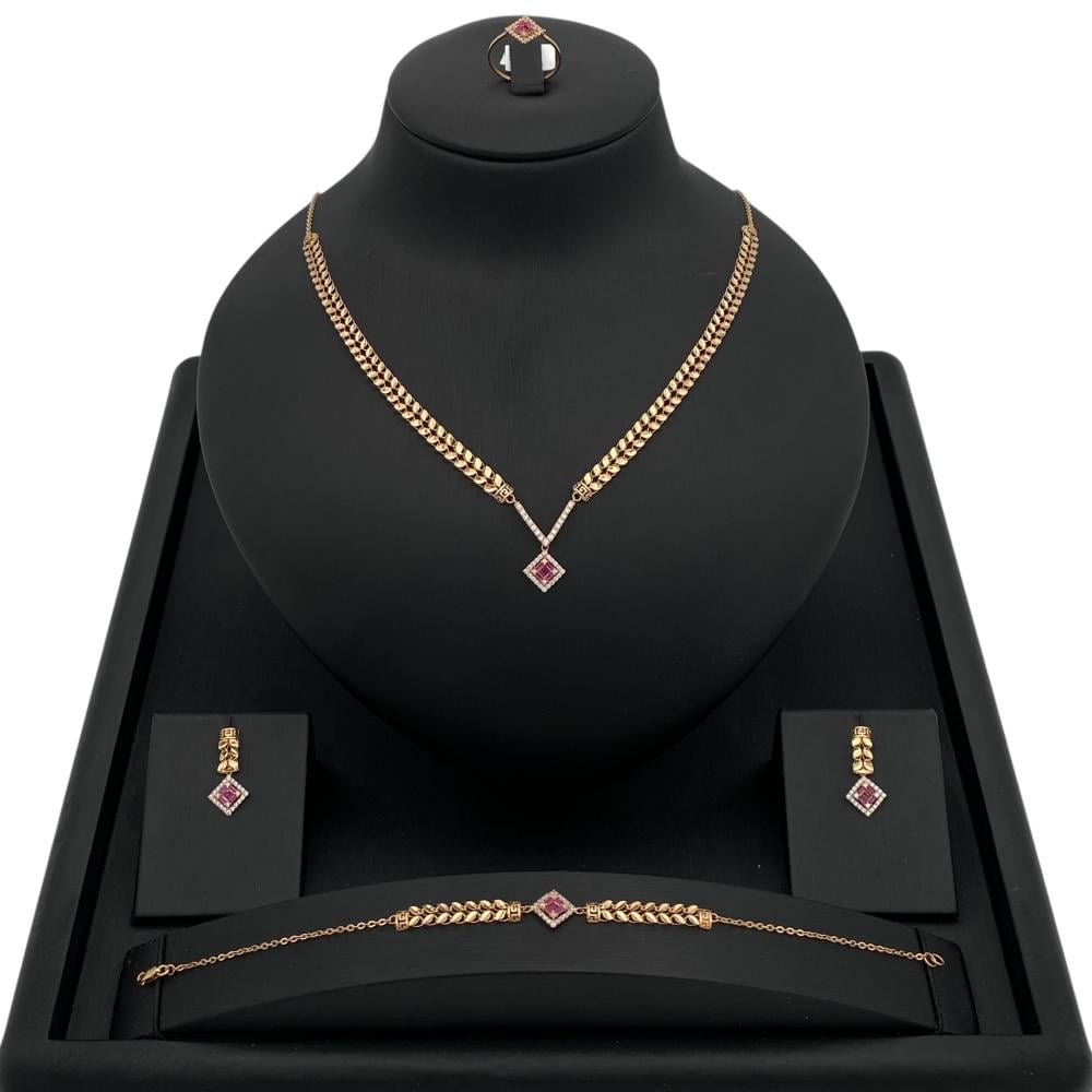 Are you looking for a 21 karat gold set that suits all your occasions? Here is this wonderful set that weighs 12.05 grams and contains distinctive pieces with a fantastic design and beautiful details. This set was made to express a look that suits you, my lady. Get it now and shine with unparalleled elegance on all occasions!
