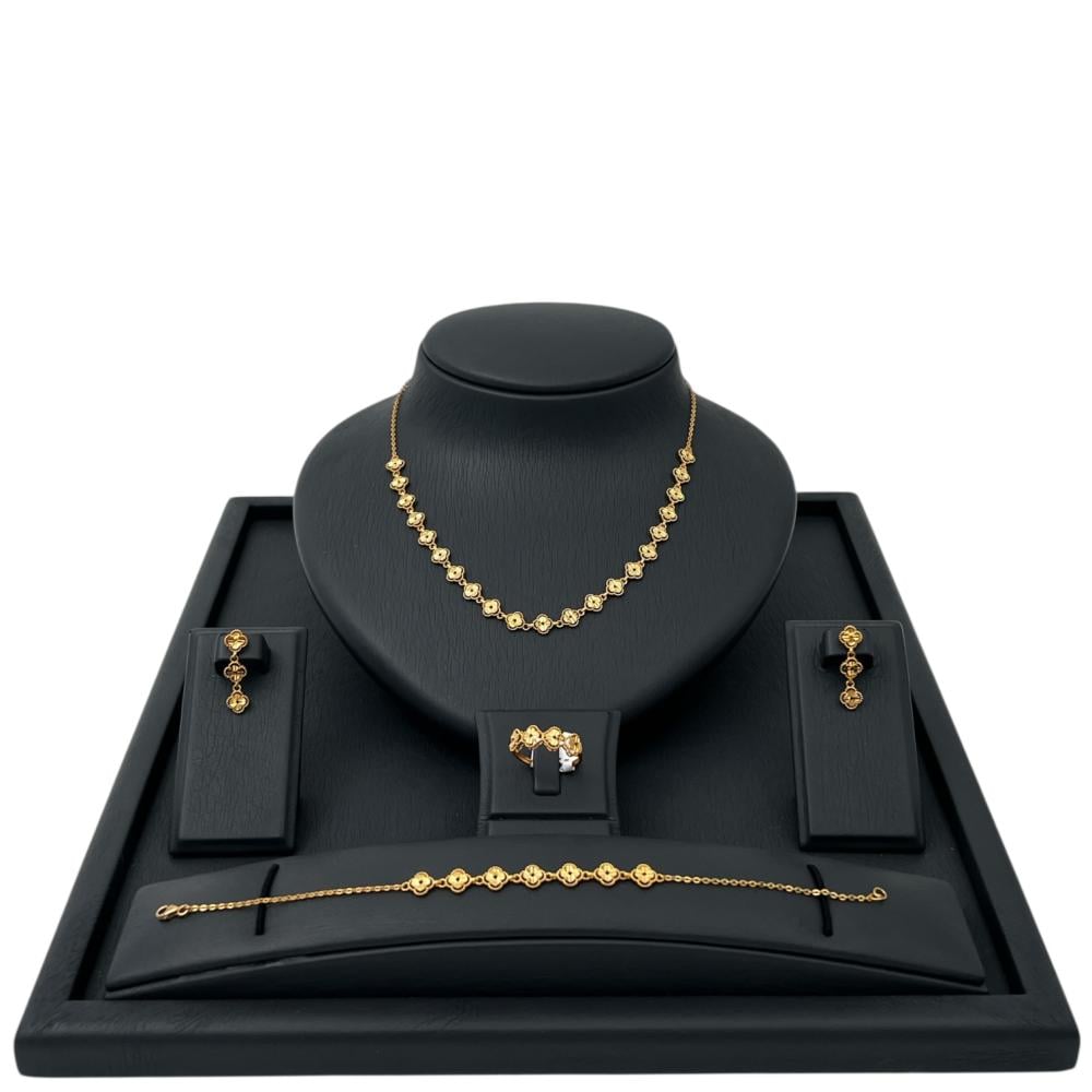 Choose a 21-karat gold set weighing 13.78 grams to get a charming and distinctive look. The set features a fantastic design and beautiful details that reflect your elegance and high taste. These elegant pieces will make you shine with unparalleled elegance, so get them now and be a shining star on any occasion!