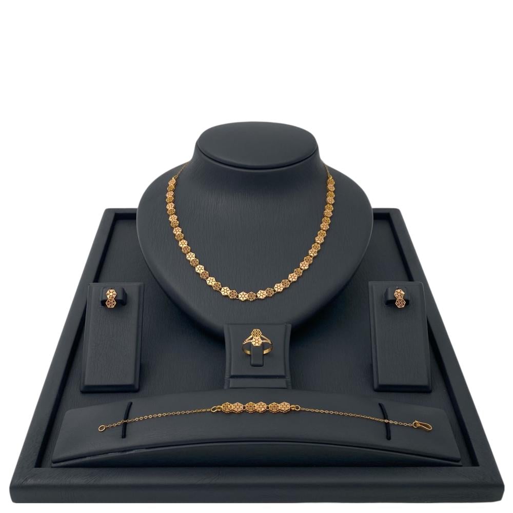 The set consists of luxurious pieces that reflect your refined taste, weighing 14.66 grams. Enjoy a 21-karat gold set with a unique and attractive design that suits you, and go out with confidence and unparalleled elegance in every occasion you attend. Get this elegant set and highlight your beauty in the best possible look.
