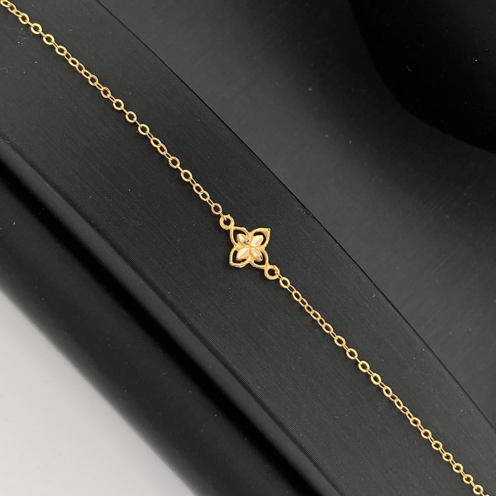 Features of the elegant 21-karat gold set weighing 7.14 grams
