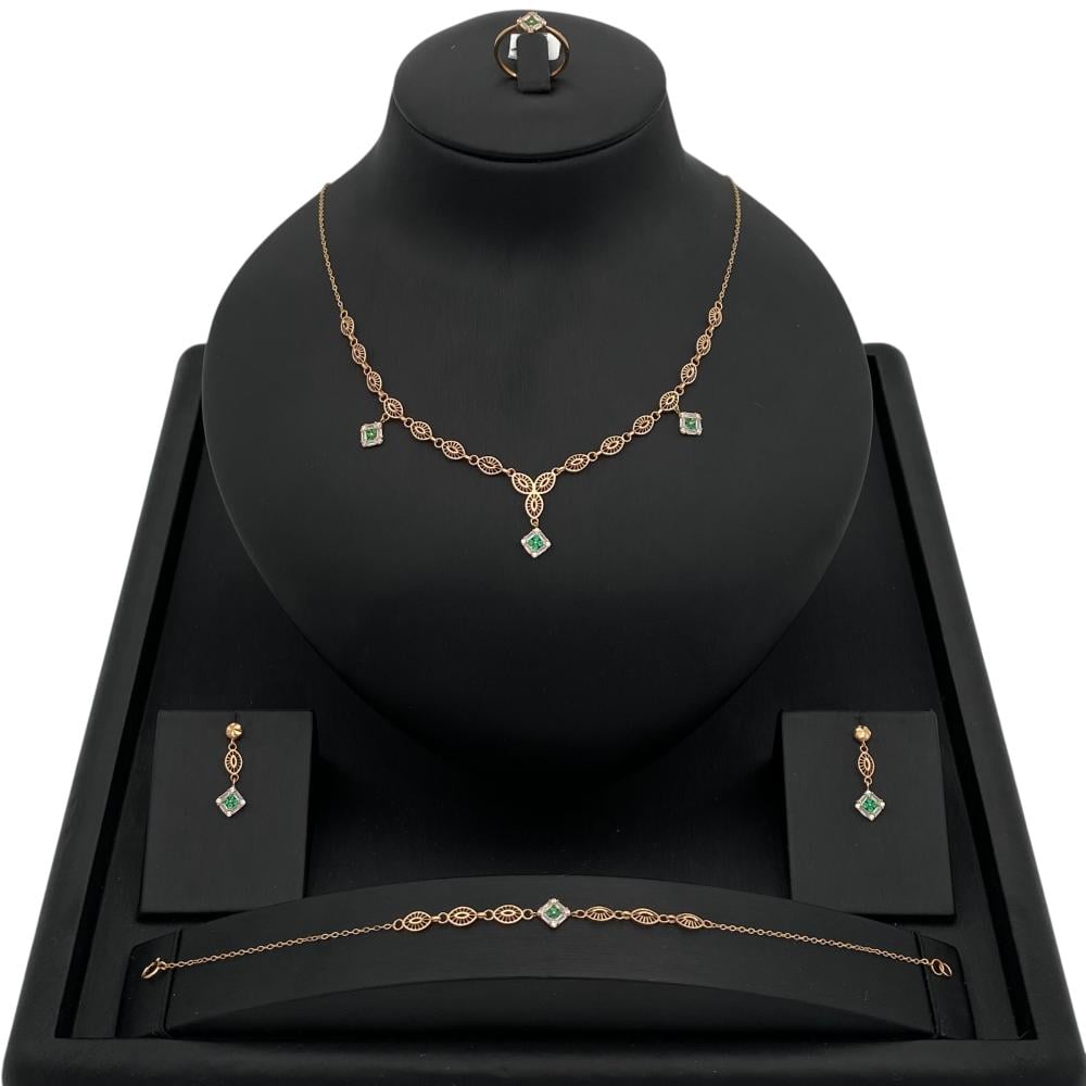 This wonderful set is made of pieces with imaginative touches that make them stand out exceptionally. Made of high-quality 21-karat gold weighing 8.48 grams, these pieces feature beautiful details and a sophisticated design that reflects your beauty. There is no doubt that wearing them will give you a charming and unparalleled look. Be radiant and eye-catching with this set that will make you look completely elegant and beautiful. Get it now and get ready to dazzle everyone with your unique elegance.