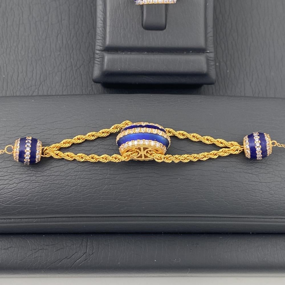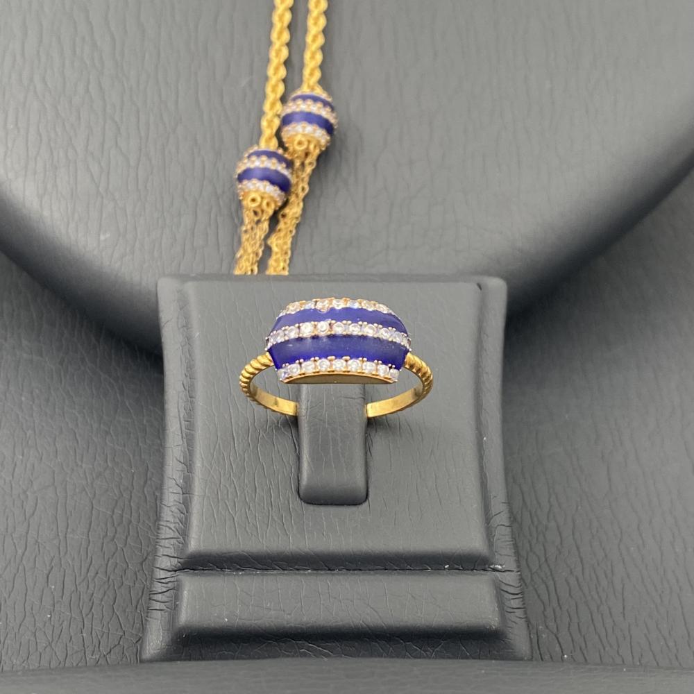 Specifications of a 21-karat gold set weighing 19.78 grams, twisted with blue rings