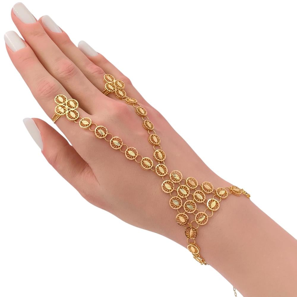 Make this Gulf-style gold cuff part of your unique jewelry collection and enjoy the sparkle and elegance of gold at every moment. This elegant piece will enhance your beauty and make you shine at every occasion.