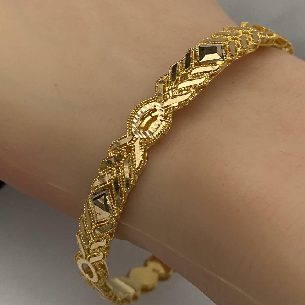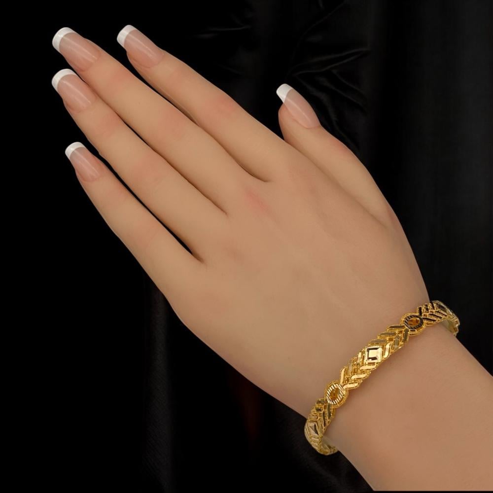 21 karat gold bracelets come in a variety of designs to suit all tastes and occasions. There are classic designs that feature traditional engravings and authentic Arabic motifs, in addition to modern designs that rely on simple and elegant lines to suit contemporary looks. Some bracelets are also available decorated with precious stones or pearls to add a touch of extra luxury.