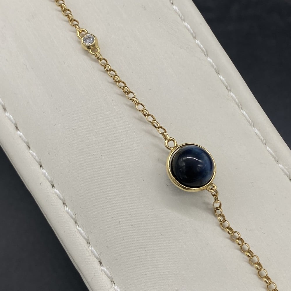 - التصميم: اسوارة ذهب مزينة بحجر أزرق