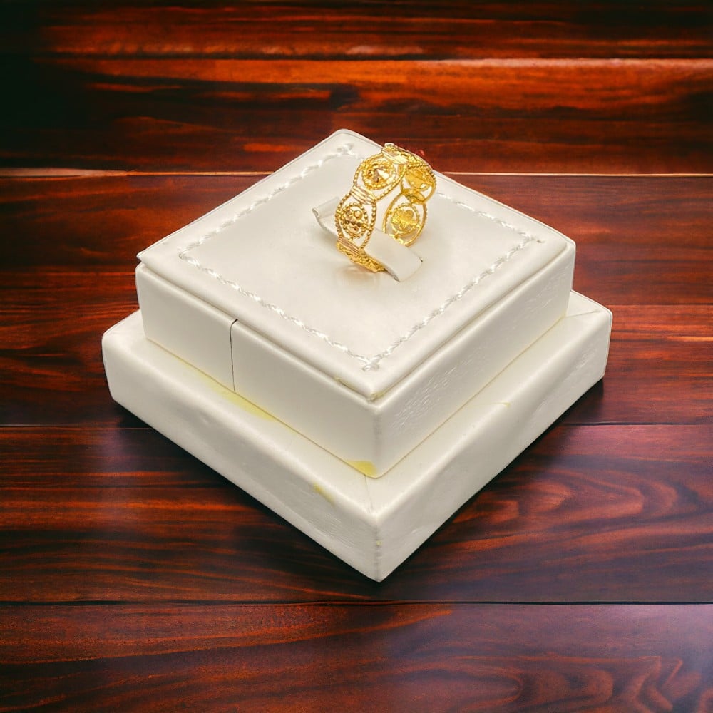 Elegant 21 karat gold ring, weight 2.34 grams, its attractive details and delicate touches make it an ideal piece for weddings and celebrations. Get this 21 karat gold ring and stand out with your elegance and the elegance of your look.