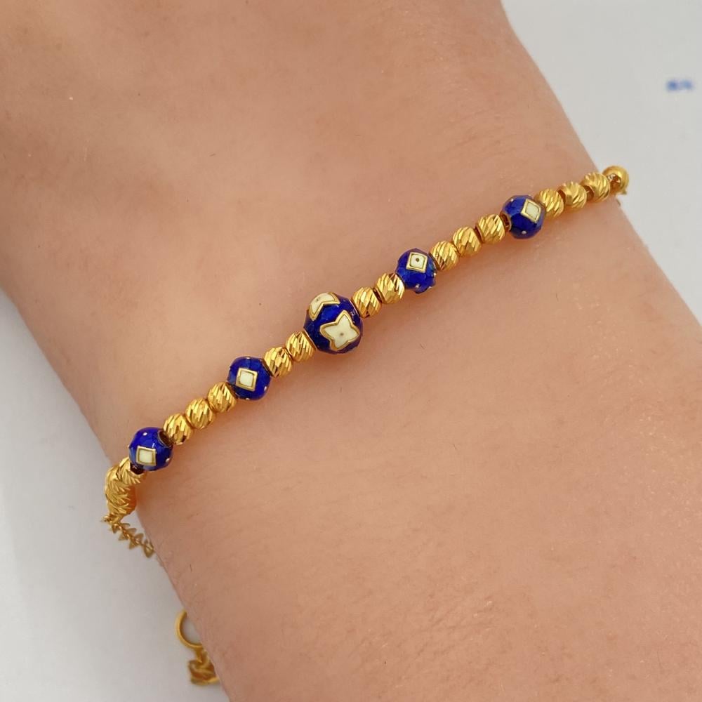 21 karat gold bracelet with blue beads, weight 2.57 grams