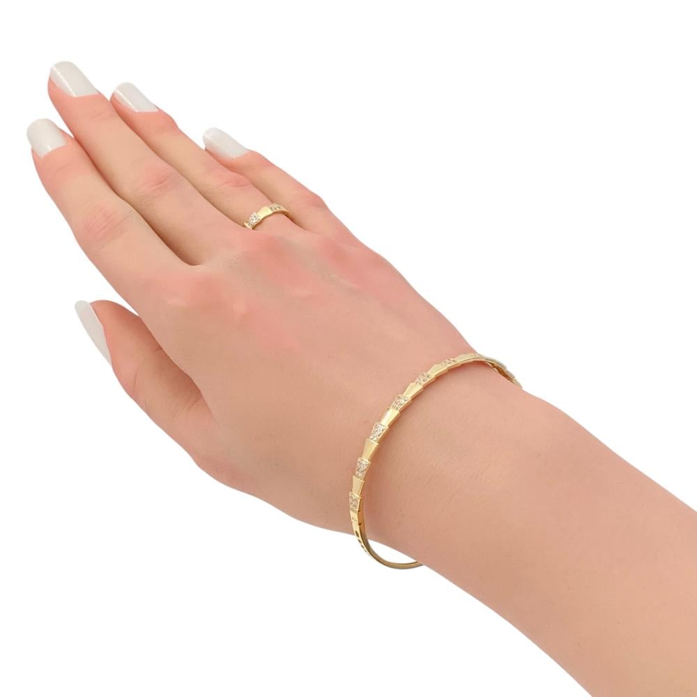 Shine with a touch of luxury with this 18-karat gold bracelet and ring weighing 6.52 grams, featuring an elegant design and studded with sparkling stones that enhance your radiance and beauty. They give you a stylish, feminine look that suits you on every occasion, combining sophistication and simplicity at the same time. They are also available exclusively through Qimmat Zawiyat Al Shifa Gold and Jewelry Store, where trust and distinction are the hallmarks of every piece.