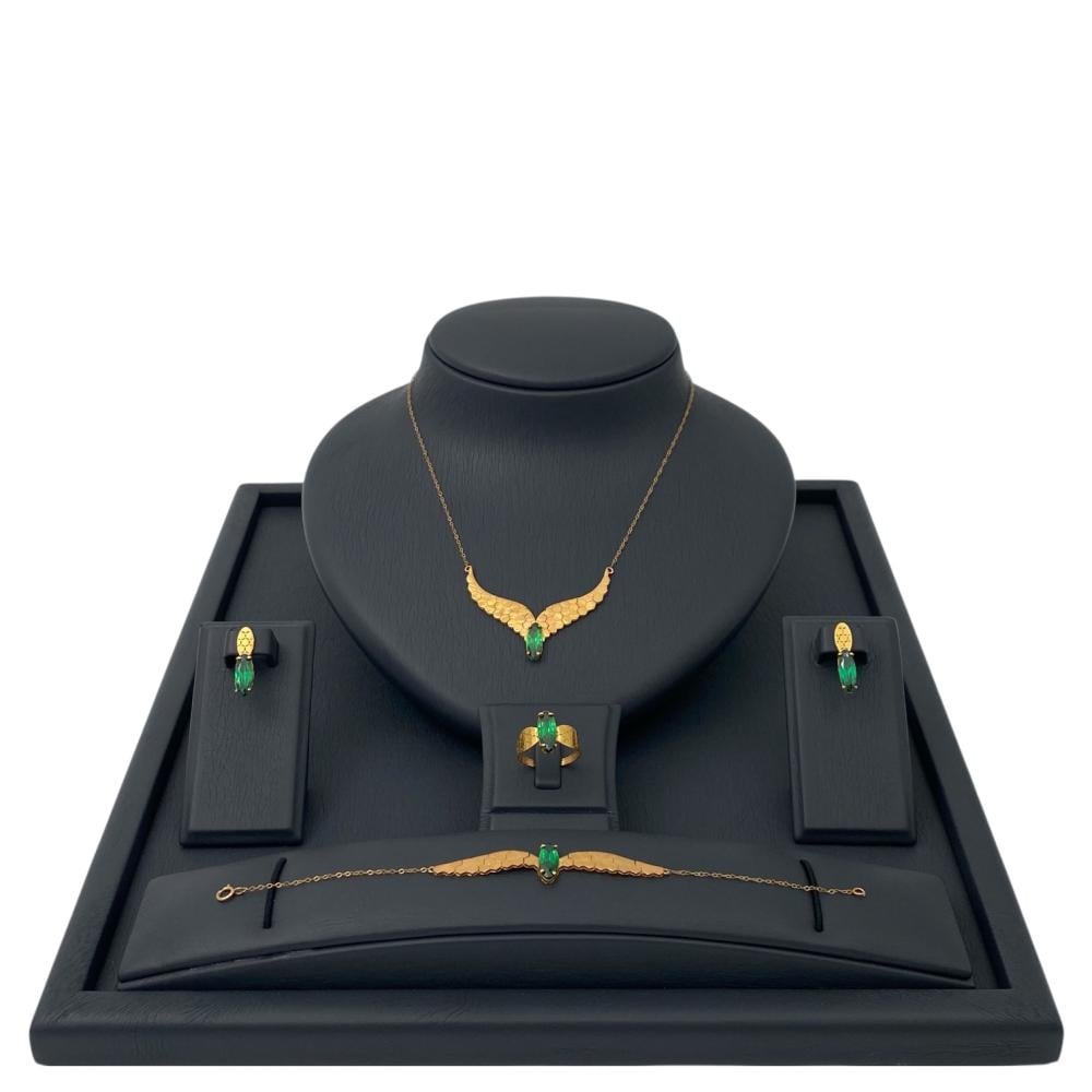 Weighing 9.2 grams, it is the perfect weight for a gold set that gives a luxurious look without being heavy. This weight makes the set stand out instantly and shows off the design details clearly. Its size also allows for subtle artistic touches to be highlighted, making it a great choice for women who want to stand out with a unique and elegant look.