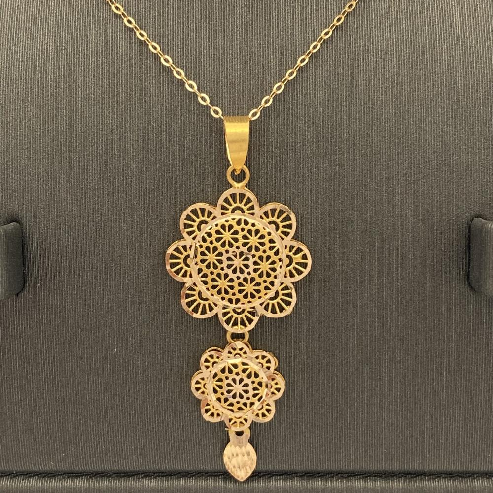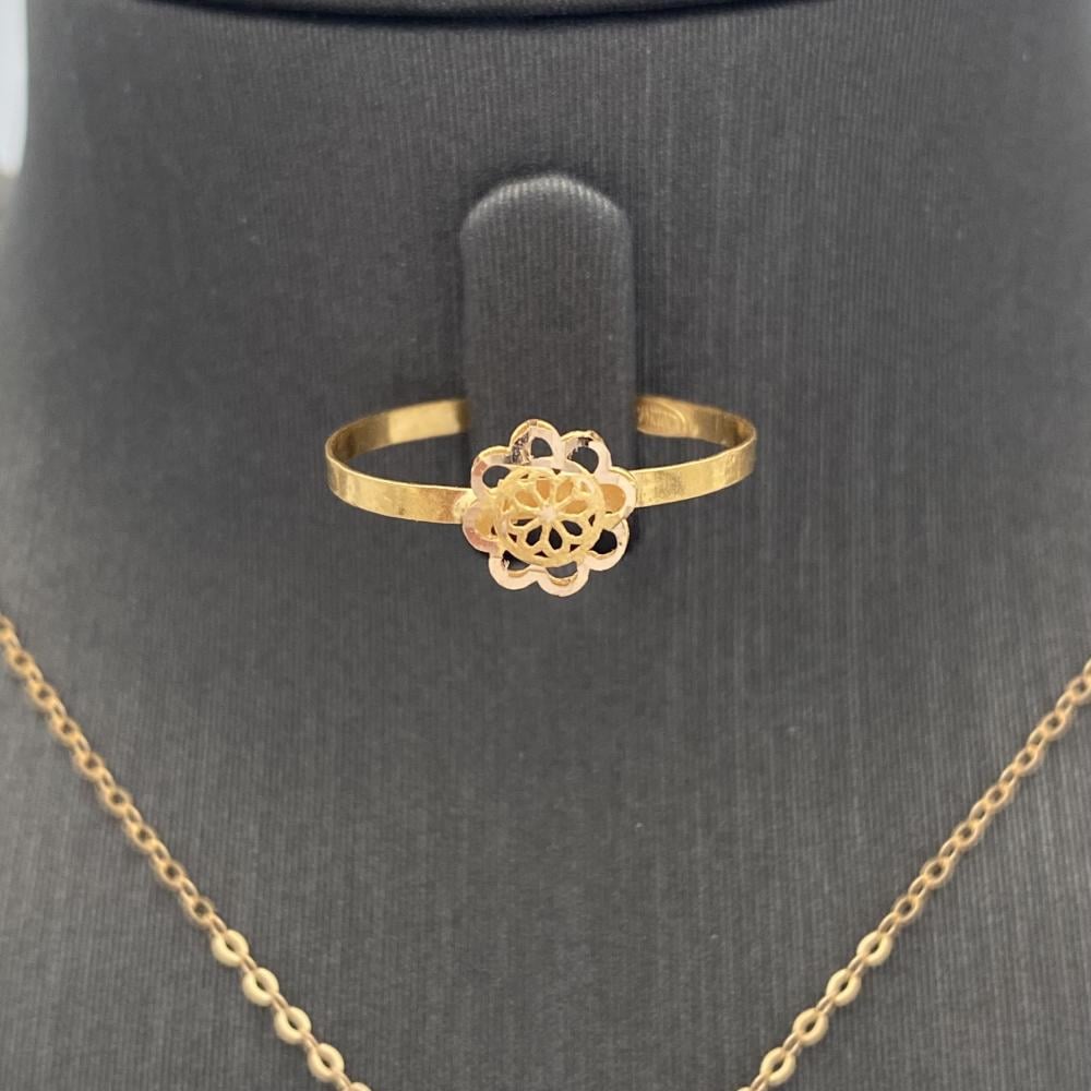 This 21k gold half set weighs 4.3 grams and features an elegant and attractive floral design. This luxurious set adds a touch of beauty and charm to your look, and you can get it to add a touch of elegance to your look. Let your hands shine with elegance with this unparalleled high-end set.