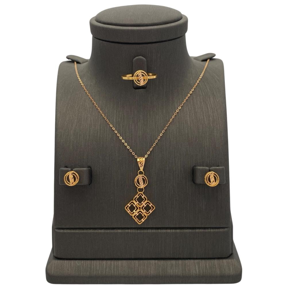 Half set of 21 karat gold, weighing 4.46 grams, featuring a luxurious and elegant design that adds a touch of beauty and charm to your look. This set includes elegant and distinctive pieces that highlight your elegance with elegance and distinction. Get this elegant set that will complete your look with elegance and charm, and make it an integral part of your precious jewelry.