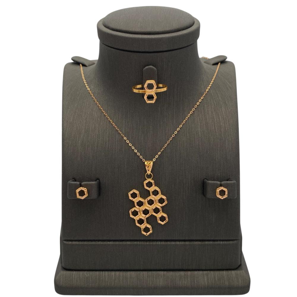 Half set of 21 karat gold, weight 5.18 grams, includes luxurious pieces that are essential in your jewelry collection. These pieces feature an elegant design that catches the eye and enhances your appearance in a remarkable way.