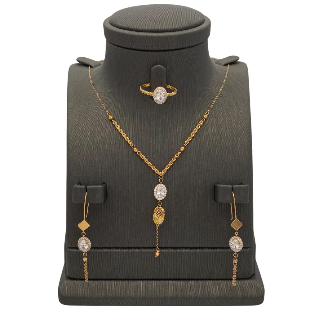 Half set of 21 karat gold studded with diamond jewelry, weight 5.35 grams. Attract attention and shine with unparalleled elegance with this elegant set.