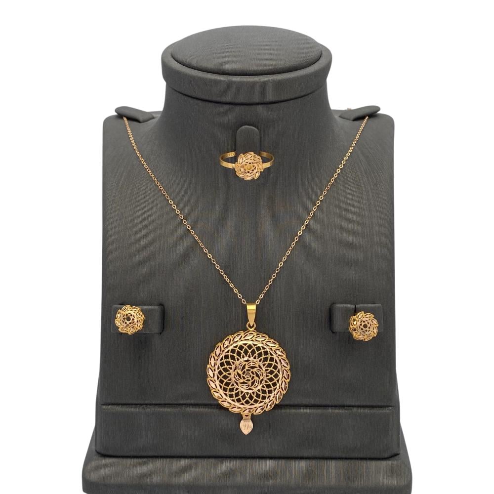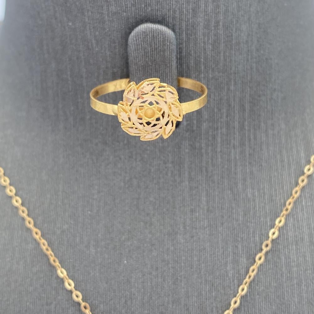 Enjoy the elegance and luxury of this 21 karat gold half set weighing 5.7 grams, which contains luxurious pieces that add beauty and charm to your look. Discover its beauty and wear it with confidence to add splendor and elegance to your look. Get this elegant set and add a touch of elegance and charm to your look!