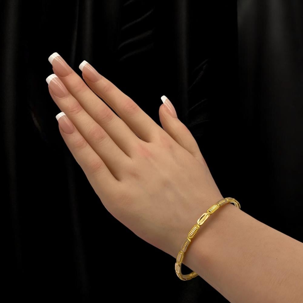 These luxurious 21-karat gold earrings feature a unique and attractive design, weighing 8.57 grams, adding a touch of luxury and sparkle to your look. Their distinctive design highlights your beauty and gives you an elegant appearance for all occasions. Get them now and enjoy fast delivery to all cities in the Kingdom!