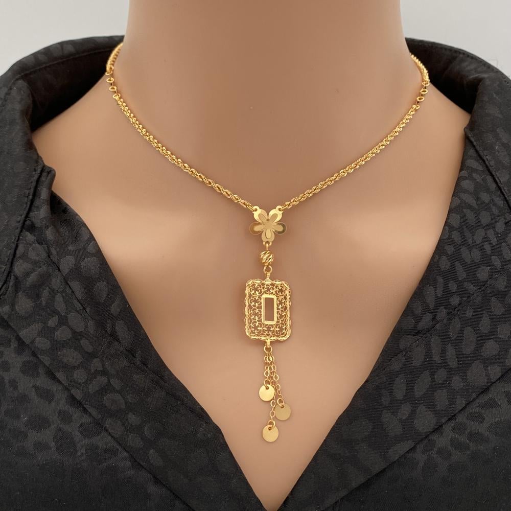 Product Description: This necklace features a luxurious design that combines elegance and beauty. With its ideal weight and unique design, this necklace is the perfect addition to your jewelry collection, making it suitable for all special occasions such as weddings, holidays, and social gatherings. This necklace will add a touch of luxury to your neck, always making you the center of attention with an unforgettable look.